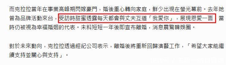 作为关注到此事的一员,笔者想说经营婚姻真的不是一件容易的事情,大有学问,但既然已经离婚了,就希望克拉拉和前夫各自安好。